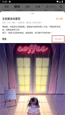 2、然后在页面中会弹出漫画的预告内容,我们需要点击的是【作品详情】按钮;