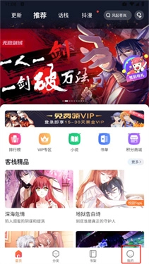 1、首先打开漫客栈软件,进入到首页中后点击右下角的【我的】;
