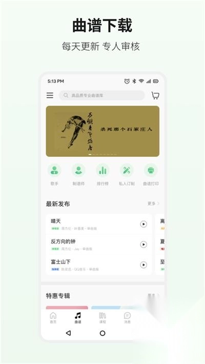 2、平台收录了海量专业音乐资源,不仅支持分类展示,还能随时为您推荐当下流行的吉他谱。
