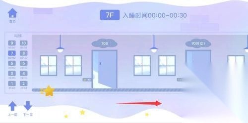 3、点击不同楼层可选择不同的睡眠时段,最早20:00即可入睡。向右滑动可选择该时段内的不同寝室。