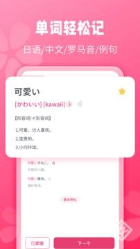 专为记忆日语单词设计的听意、假名选择、听音辨词、听音写词、假名组合、听音记忆等复习方法,将学习与乐趣相融合,让日语学习摆脱枯燥感。
