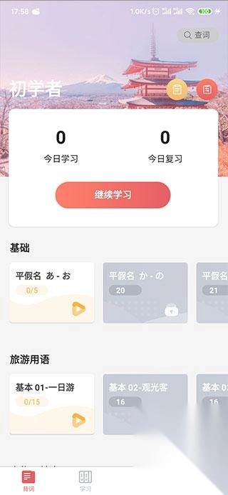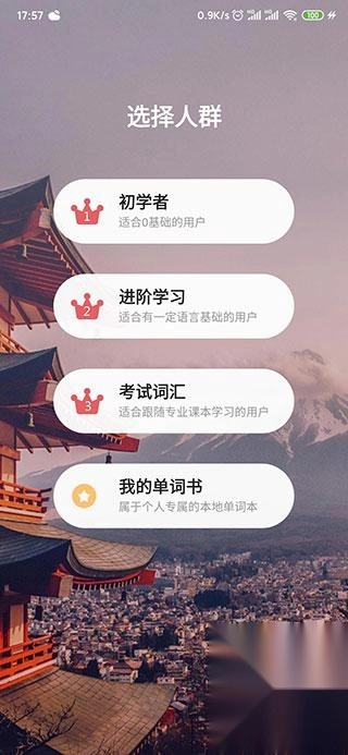 1、在本站完成安装并启动莱特日语背单词应用,随后选择适合自己的学习阶段: