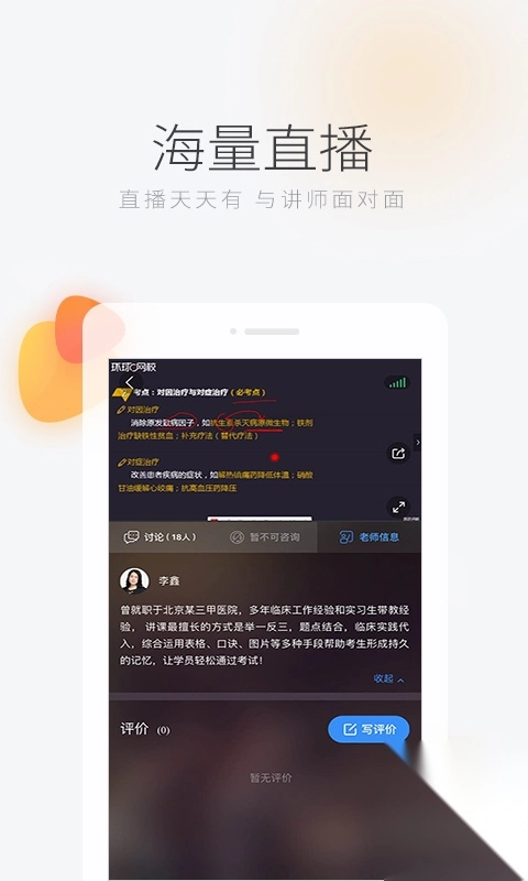 2、考试信息实时更新,手机直播课堂老师答题互动,真实模拟考试现场,手机还可以写作业。