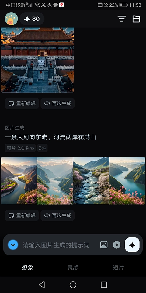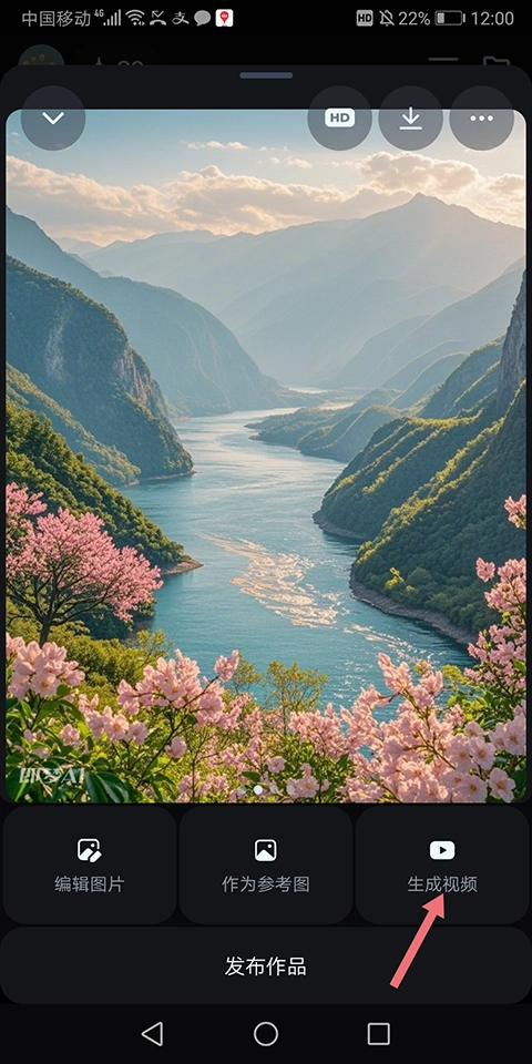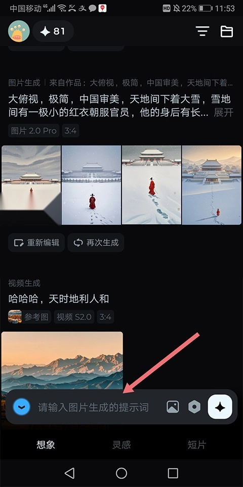 2、视频创作-想要动态表达?输入你的想法,即梦AI会生成一个视频,多次尝试,得到满意的结果。
