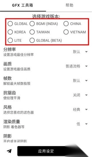 每次打开gfx工具箱时,界面上方会弹出“选择游戏版本”的提示,此时只需勾选所需的版本就行。