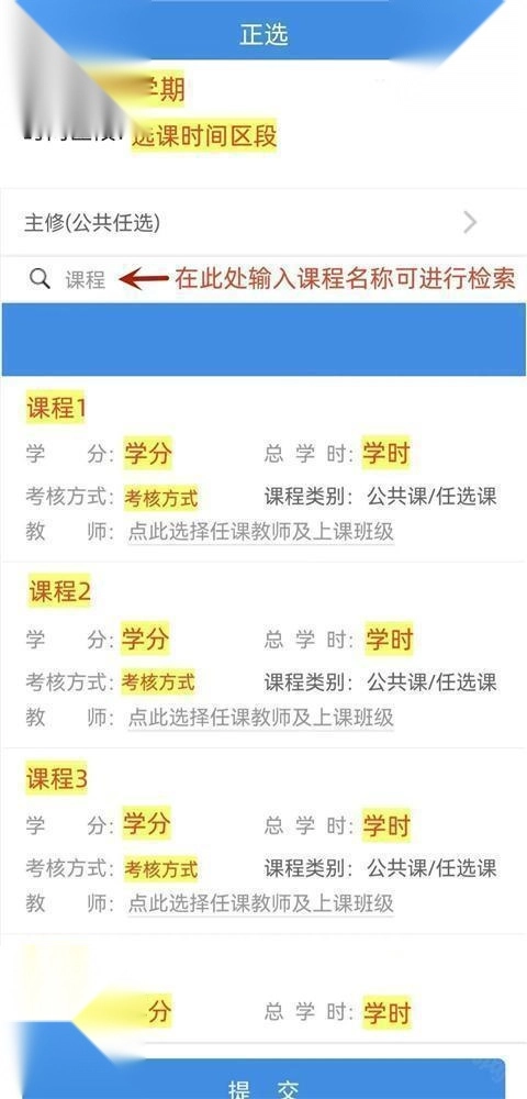出现提交成功提示即选课成功!