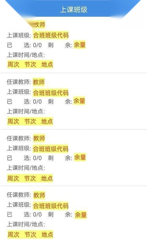 检索到课程后,点击【点此选择认可教师及上课班级】,即可进入上课班级界面。