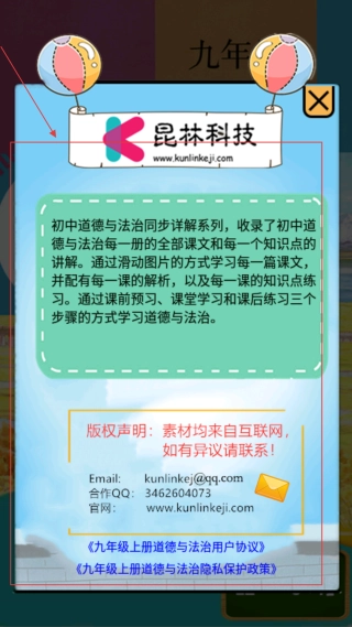 进入介绍界面,能了解【初中道德与法治同步详解系列】的学习方法,还可查看版权声明及相关协议。