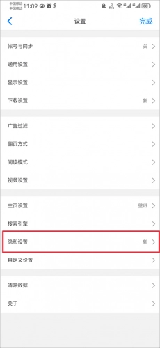 按照上面的步骤打开设置页面,然后在设置页面中点击隐私设置