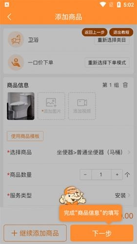 4、根据下单页面,填写需要安装的商品信息,完成后点击【下一步】;