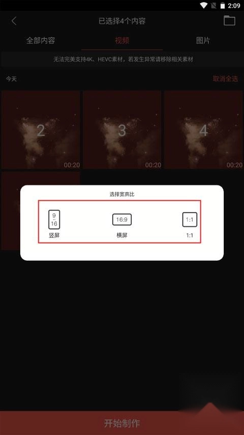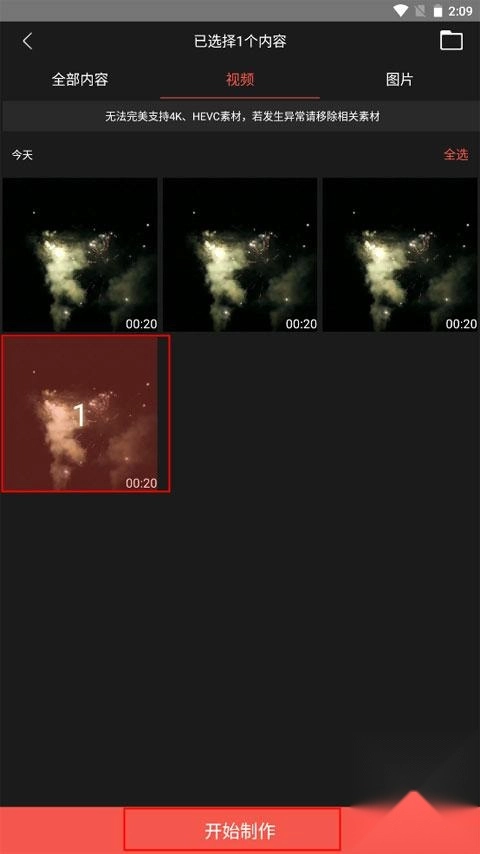 在你的相册里导入想要制作的视频素材,选中后点击下方的开始制作按钮。