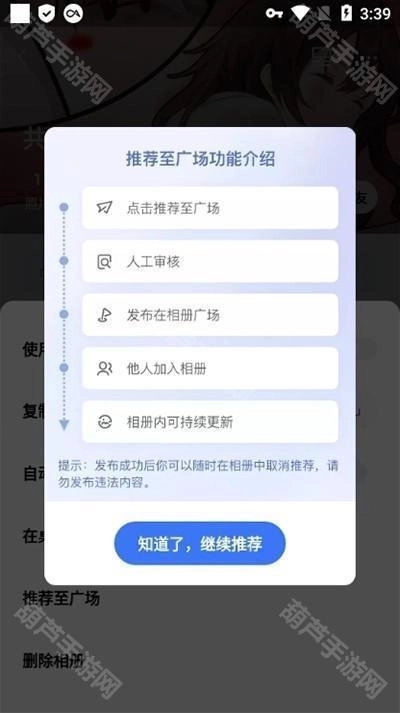 2、接着在这个位置就能找到分享功能,还可以将内容推荐到广场。