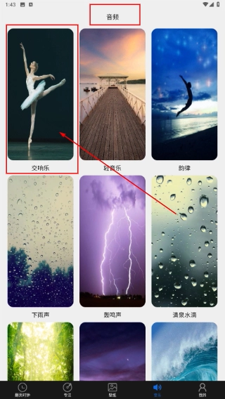 3、切换至【音质】板块,选择目标音效类型(如交响乐),进入该音效的预览界面。