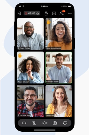 通过我们功能齐全的视频会议软件,使用视频、音频和屏幕共享与您的团队实时协作。