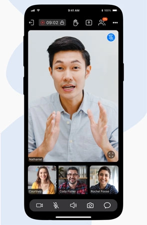 查看共享屏幕或应用程序并与其他会议参与者进行上下文协作。在会议期间共享您的手机屏幕。
