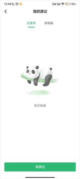 3、进入我的游记界面,点击写游记。