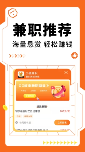 悬赏任务平台小鹿兼职为大学生、宝妈、上班族,精心筛选各类兼职信息,小鹿兼职的信息经过多重审核,层层过滤黑中介和虚假信息。
