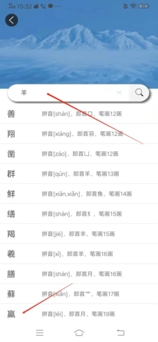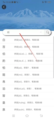 2、在搜索栏中输入想要查的字,可以是部首、偏旁,也可以是字的拼音;