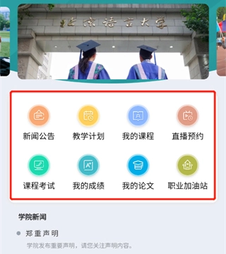 当然,并非所有功能都对全体学生开放,部分课程的抢课等操作是特定阶段才需要用到的;大家还能在这里查询个人成绩,若成绩未达标需要补考,也可以直接在此预约!学生们可通过该平台即时查询学习成绩、考试安排、教学活动、个人信息等内容,平台还设有学习提醒功能,助力大家随时随地掌握最新学习进度,不错过学习中的任何关键环节。此外,平台为网院学生提供了学习课件、做作业、考试预约、在线学习等快速便捷的功能,全方位满足“随时、随地,想学就学”的碎片化、移动化学习需求,为学生带来方便、快捷、高效的自主学习体验。