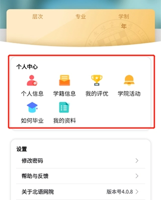 4、之后你们就能在页面上看到【个人信息】-【学籍信息】-【学校活动】之类的选项,大家可以自行查看。