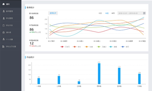 国字云平台为学校打造了一套数字化的实时教学监管系统,学校管理员能够借助该平台开展实时数据追踪、教学成效评价等相关工作。