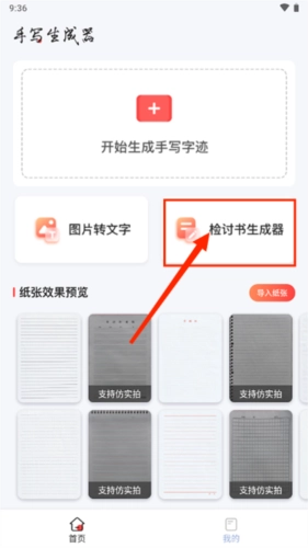 3、返回首页点击”检讨书生成器“。