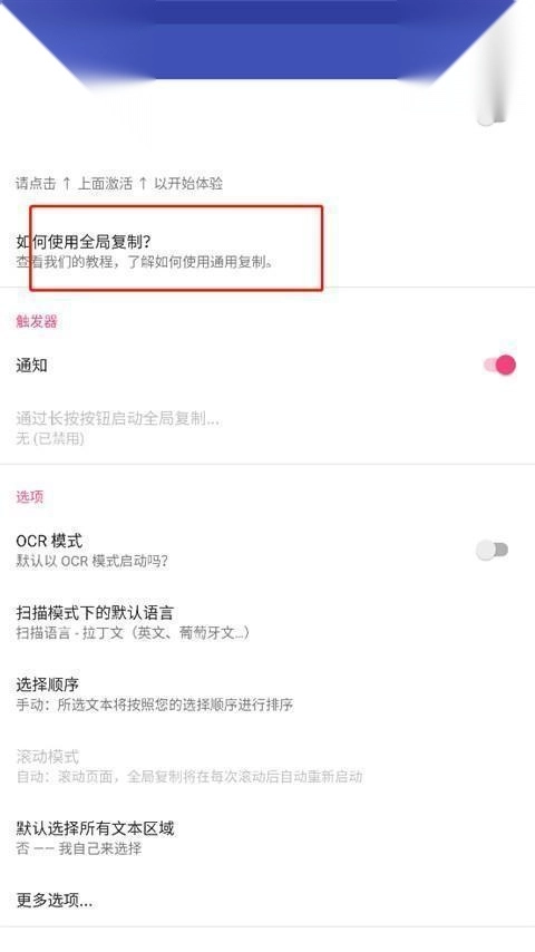 3、启用OCR模式以识别无法在正常模式下获取文本的图片或应用程序中复制的文本