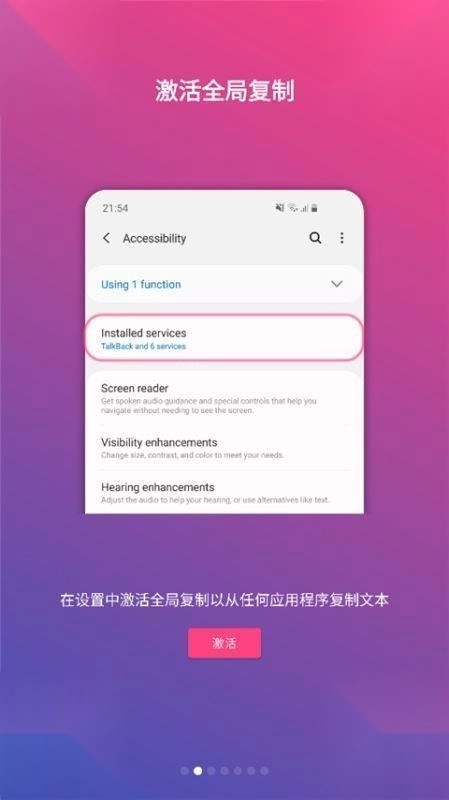 2、启用辅助服务以激活全局复制模式,并在各种应用程序中轻松选择要复制的文本