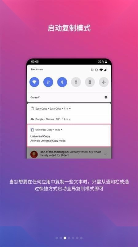 5、之后用户如果想要复制任何应用中的一些文本的话,只需要从通知栏或快捷方式启动全局复制模式即可;