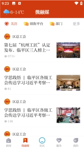 1、信息服务:悦临平与各级政府门户网站对接,提供最新资讯“随时看”服务
