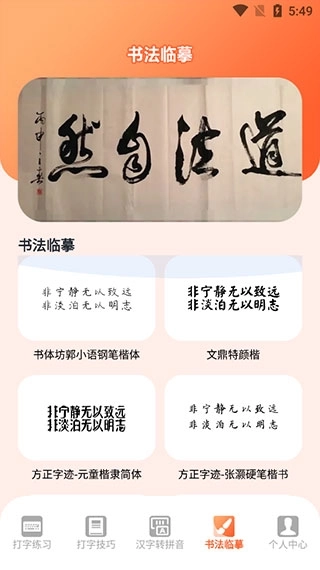 4、书法临摹:涵盖多种书法风格,可自定义练习文本,助力全面提升书写能力。