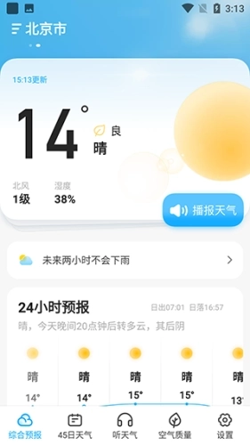 3、自动精准定位,语音播报天气。