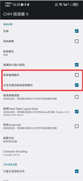 1、设置界面里有两种翻页方式可供选择,你可以根据自己的喜好勾选对应的翻页模式。