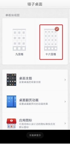 3、从外观上看,它和锤子OS上的原生版本没有明显差异。和锤子OS相同,用户能够选择九宫格与16宫格的界面布局,还可以通过双指缩小桌面来移动图标。