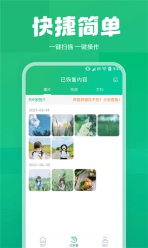 3、无须root快速恢复数据:保证手机安全,无任何伤害。