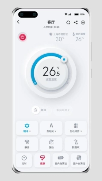 5,8种空调模式切换:制冷,制热,除湿,送风,自动;静音,强力,睡眠